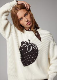 Made in Italy from a cotton and wool blend, this oversized cream crew-neck sweater features a contrasting 'Strawberry' motif for a playful touch. Finished with a crew neck collar and ribbed trims, this chunky knit is the perfect unique addition to your layering wardrobe The Fit - Oversized is cut for a loose, oversized fit. Product Code: W1R-680N-V11220-02