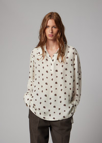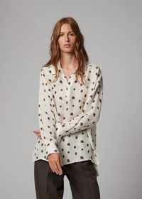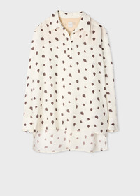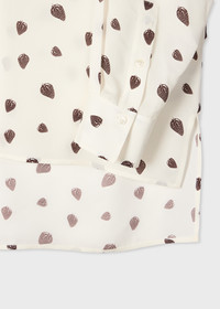 Made from a viscose and silk blend for a soft feel this cream shirt features a contrast 'Strawberry' print. Cut to regular-fit in a longline silhouette the shirt features a dropped hem and half placket for a modern touch. Pair with neutral tones for effortless seasonal styling. The Size Model wears a size 40 (UK 8) Model measures: Height 179cm / 5'10'' | Chest 77cm / 30.5'' | Waist 60cm / 23.5'' Product Code: W1R-387B-V11208-06