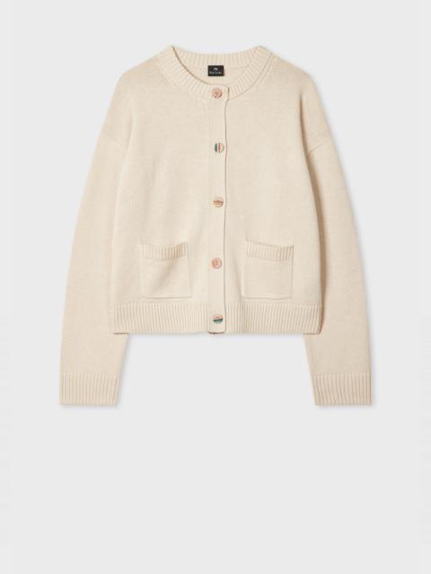 Crafted from a luxurious blend of wool and cotton, this cream knitted cardigan provides versatile style with a classic button-through design with a 'Swirl' trim placket. Featuring a refined silhouette, this cardigan can be effortlessly styled over a simple tee or elegant blouse for a polished everyday look. The Fit - Regular-Fit is relaxed through the body. Product Code: W2R-585N-T31330-05