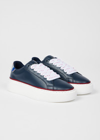 Crafted from a smooth leather upper the 'Guppy' platform trainers are in a sleek dark navy colourway and feature a contrast thick rubber sole. Contrast features include thick contrast laces, tipping to the base, 'Swirl' detailing to the heel tab, and gold foil embossed branding. 100% Leather Uppers 100% Rubber Soles Product Code: W1S-GUP02-NLEA-49