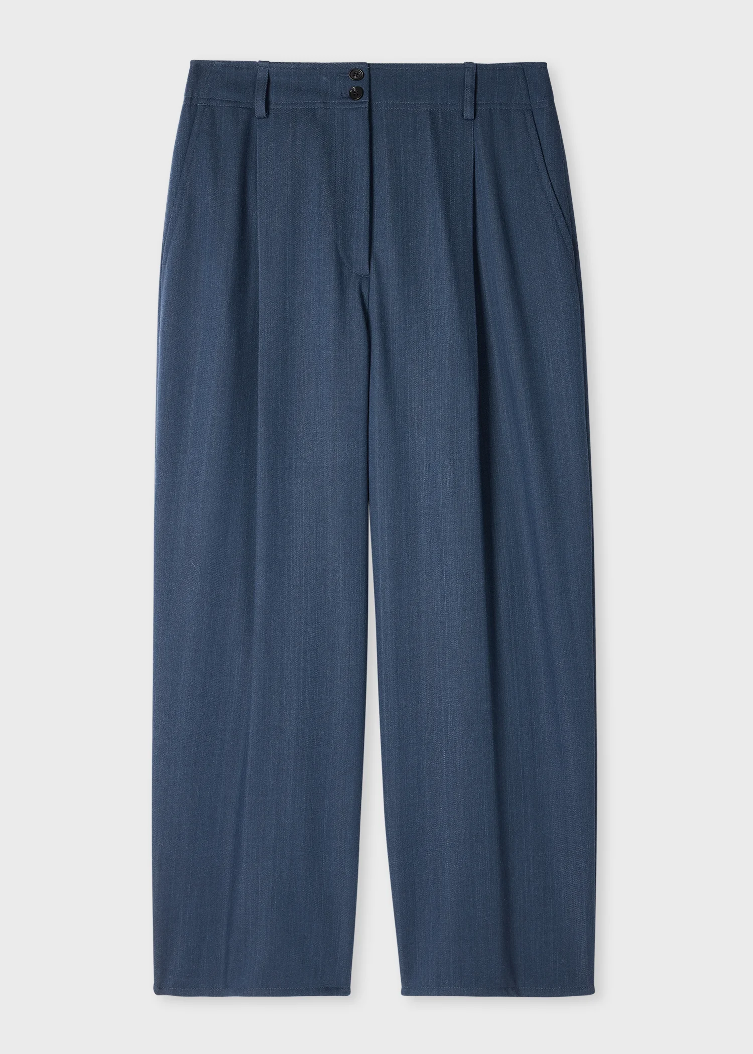 Made in Italy from a wool-blend denim chambray construction, these barrel-leg trousers showcase a contemporary silhouette. Complete with subtle pleat detailing for a feminine touch, the trousers feature twin-slit pockets at the front and a back pocket with patch detailing. Elevate your smart-casual wardrobe this season and pair these modern trousers with a soft blouse to complete the look. The Size Model wears a size 40 (UK 8) Model measures: Height 5’11’’ / 180.5cm | Chest 30½’’ / 78cm | Waist 23’’ / 59cm Product Code: W1R-361T-T11159-46