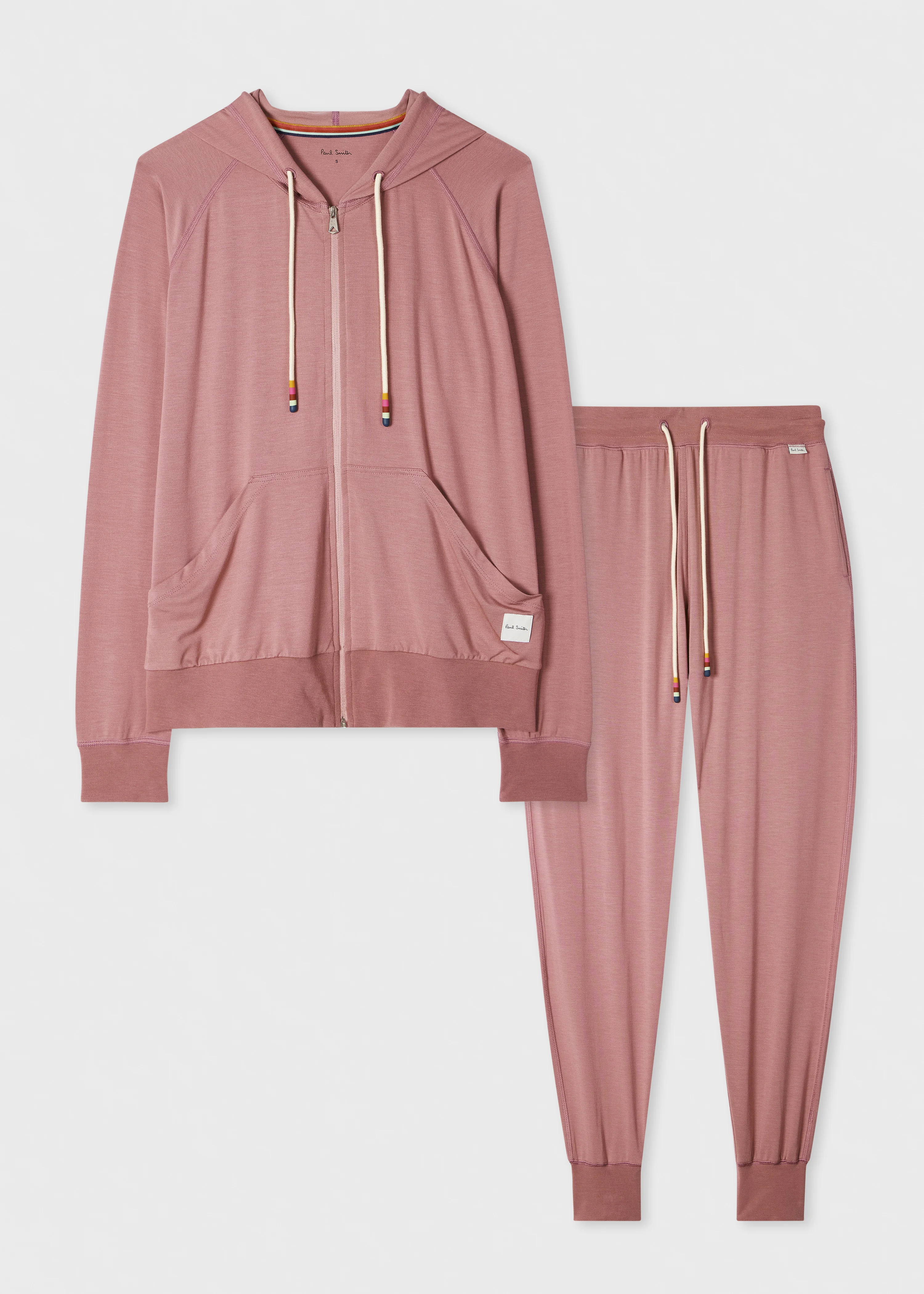 Made from a soft modal-blend jersey, this dusky pink zip loungewear set features 'Swirl' trims for a luxurious touch. Product Code: W1A-ECOMM-PU336-20