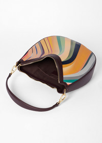 Made from a luxe leather composition, this mini-size round hobo bag features the staple 'Swirl' faded print with block-coloured leather panels for elevated styling. It is finished with a main zip compartment, internal slip pocket, and leather shoulder strap. 100% Calf Leather with 100% Cow Leather Trim Lining: 100% Cotton Size: H: 23cm x W: 24cm x D: 8cm Product Code: W1A-8052-GSWIRL-90