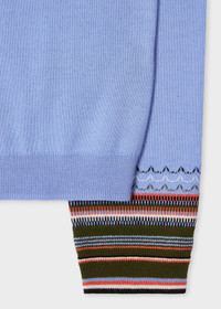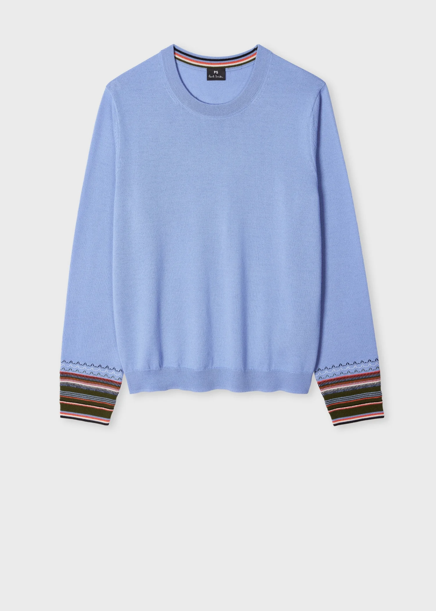 Women's Dusty Blue Merino Wool Stripe Cuff Sweater