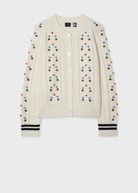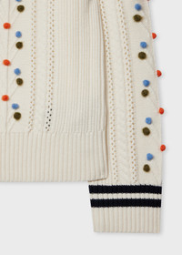 Women's Ecru Cable Knit Pom Pom Cardigan