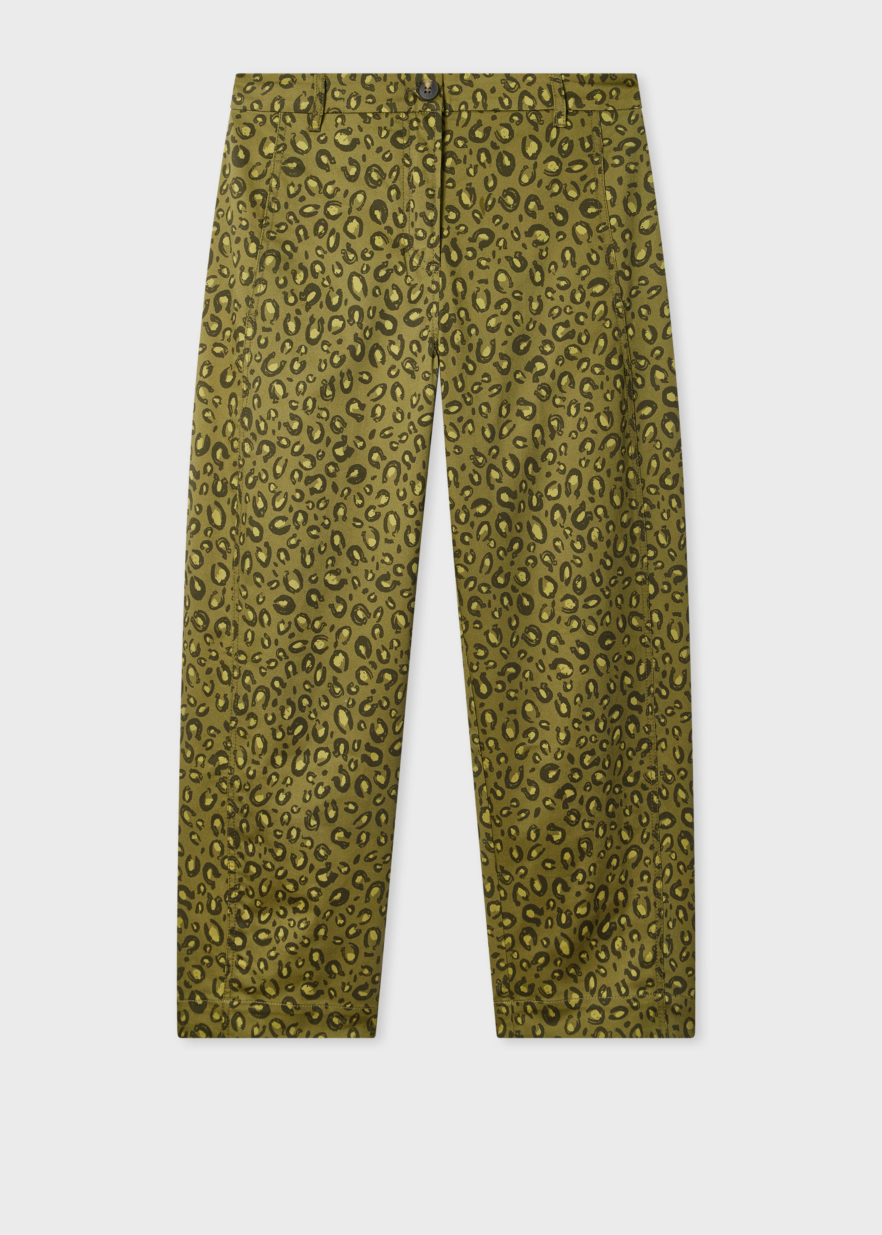 Women's Khaki 'Animal' Print Barrel-Leg Trousers