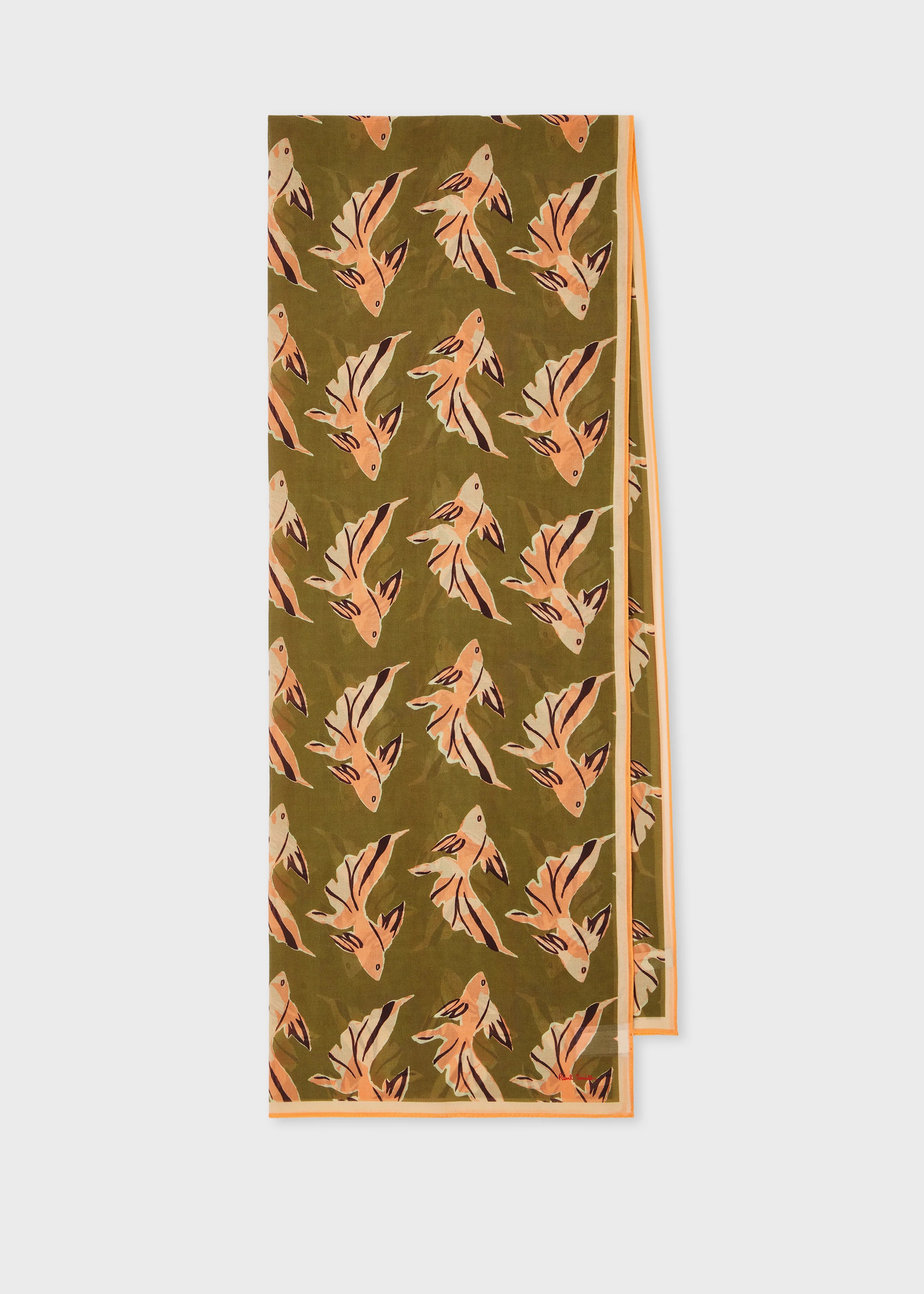 Made in Italy from soft cotton this khaki scarf features the seasonal 'Le Peche Fish' print. Ideal for daily styling, this lightweight scarf adds a touch of seasonal colour to outfits. Product Code: W1A-250B-U941-63