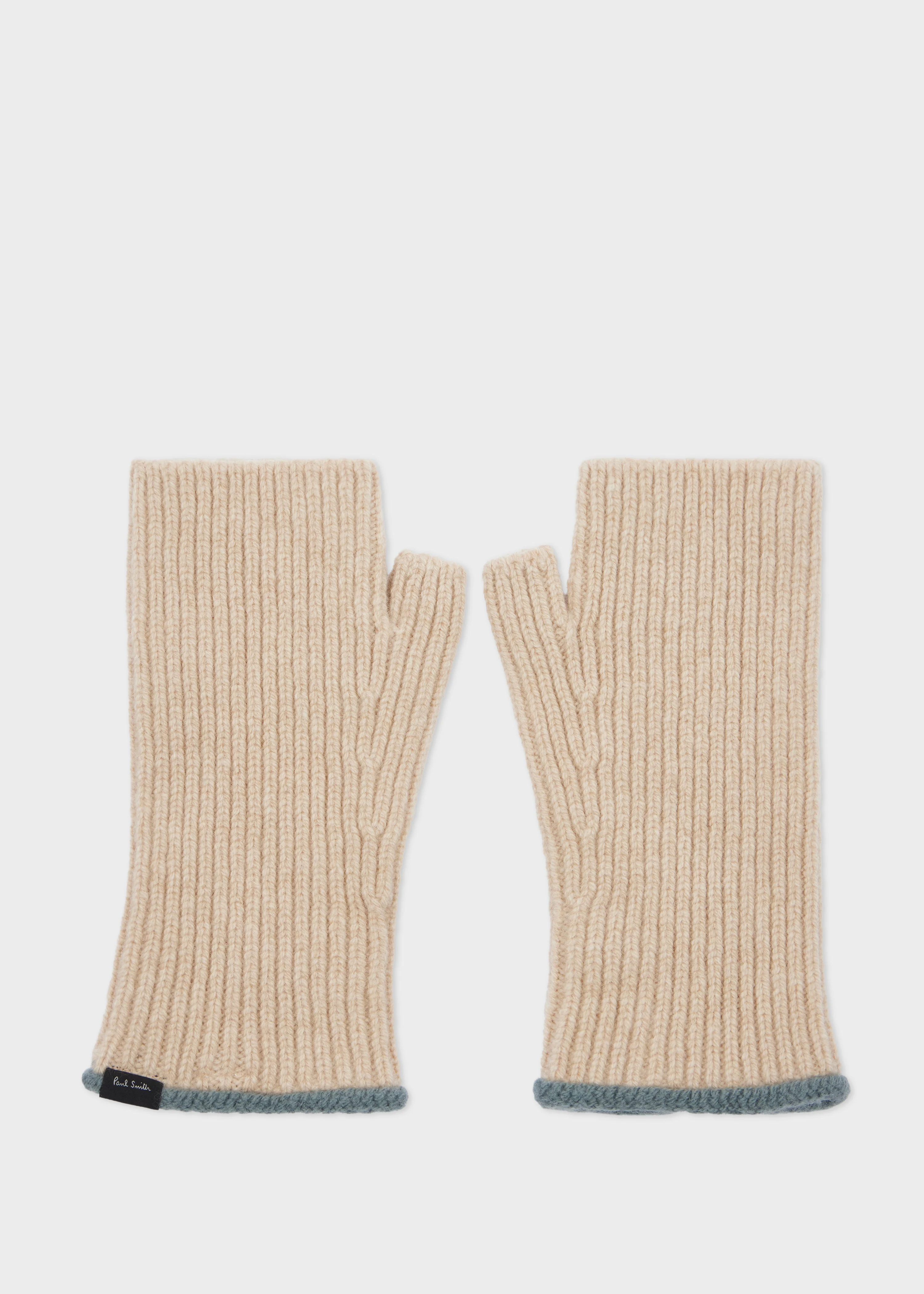 Made in Great Britain from 100% lambswool, these cream fingerless gloves are perfect for the transitioning weather. These gloves are complete with a contrasting stripe on the wrist and signature Paul Smith logo label tap. Product Code: W1A-425MK-T773-02