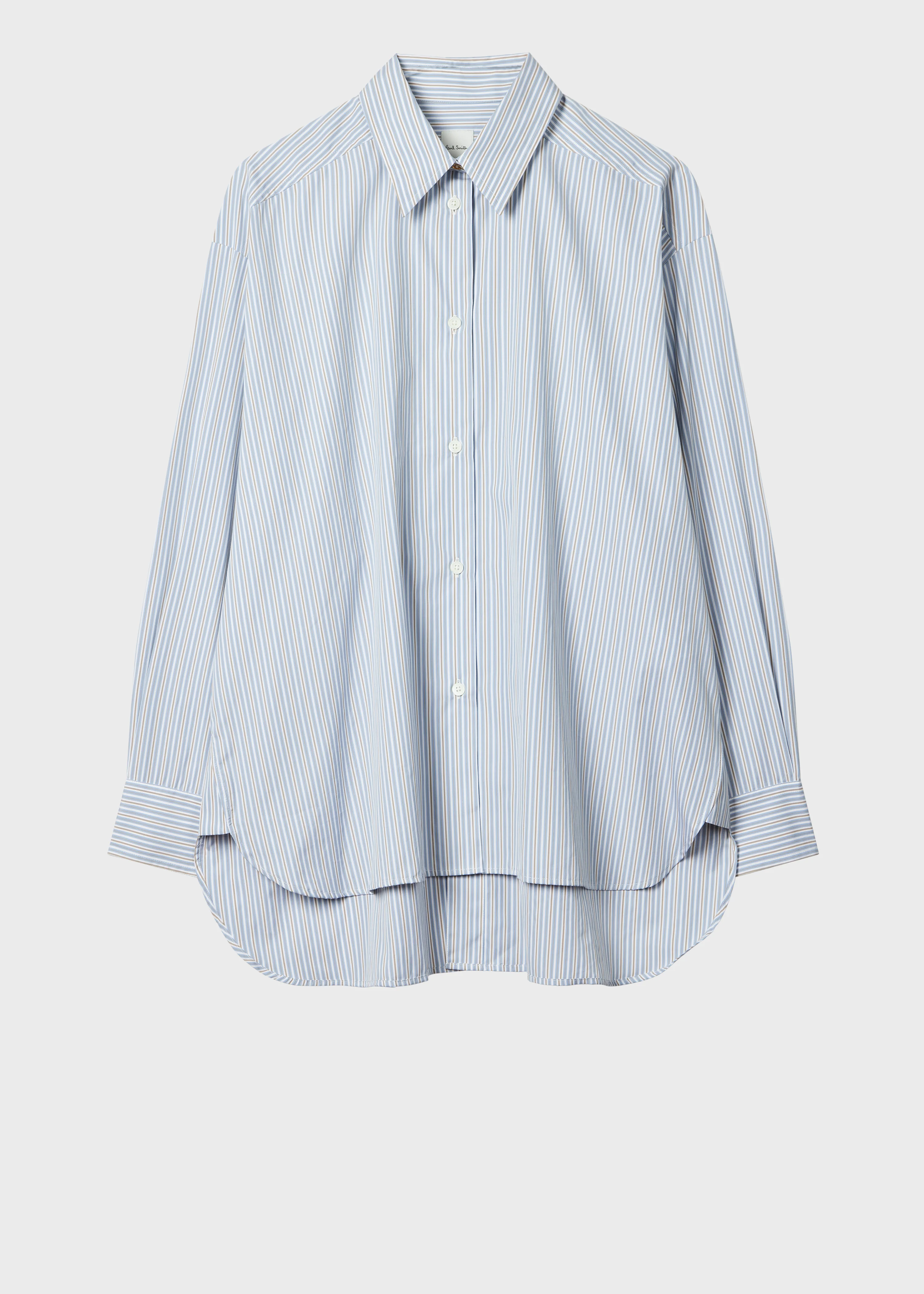 Made in Italy from a pure cotton construction, this light blue shirt is cut to an oversized fit and features a subtle stripe design. For a unique touch, the shirt features a dropped hem silhouette and additional back button fastenings. The Size Model wears a size 8 Model measures: Height 5’11’’ / 180.5cm | Chest 30½’’ / 78cm | Waist 23’’ / 59cm The Fit - Oversized Product Code: W1R-346B-T02783-40