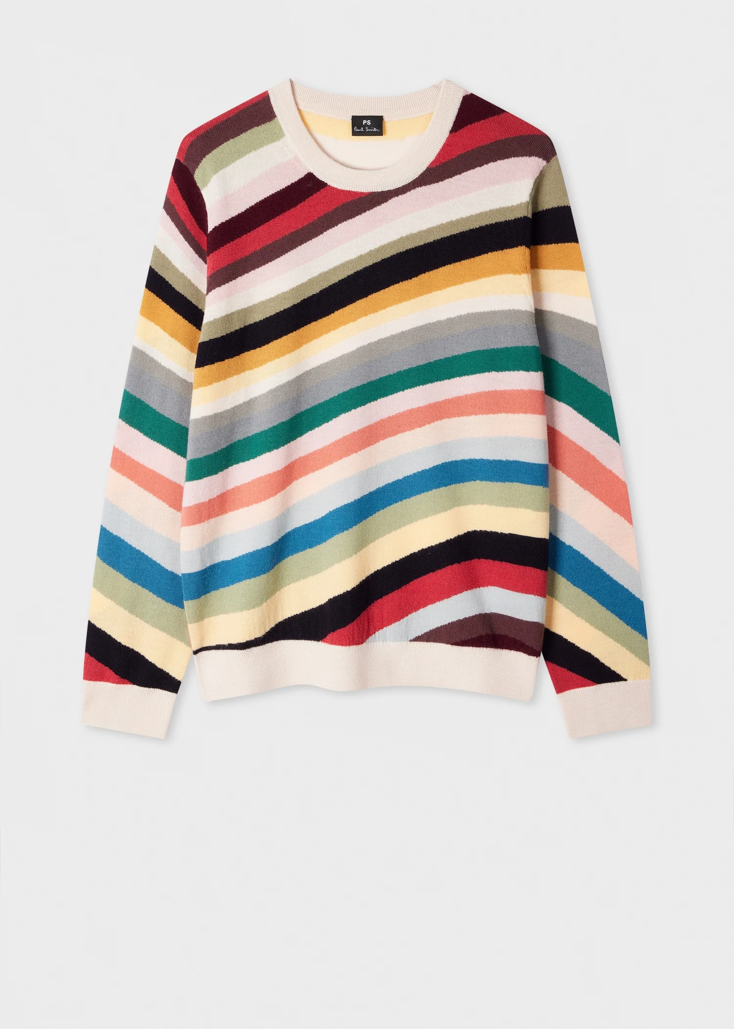 Made from 100% merino wool, this multicolour crew neck sweater features a playful 'Swirl' pattern throughout. Perfect for adding a vibrant touch to your transitional wardrobe whilst maintaining warmth and comfort. The Fit Regular-fit is relaxed through the body Product Code: W2R-575N-T31328-92