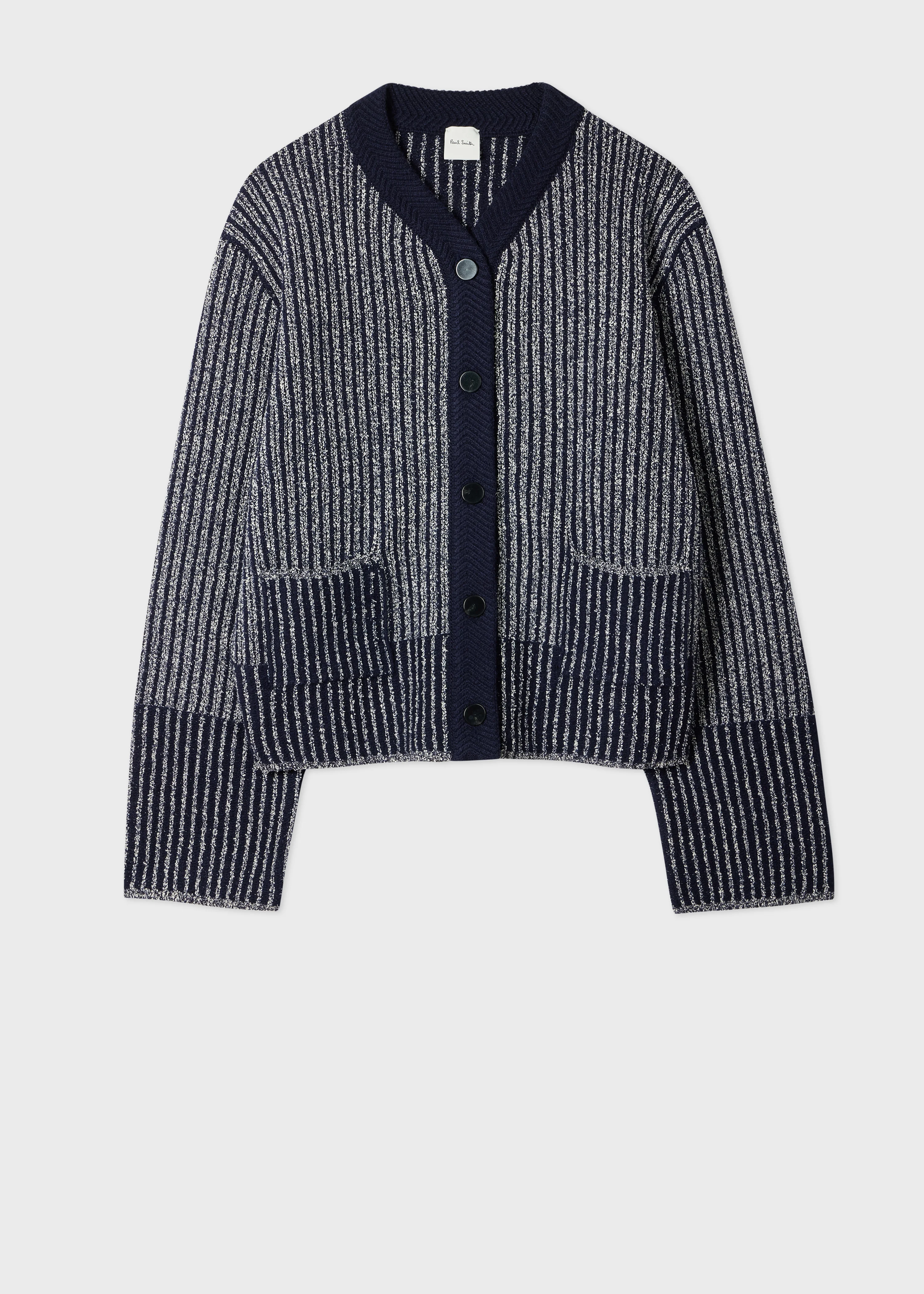Women's Navy Wool-Blend Ribbed Knit Cardigan