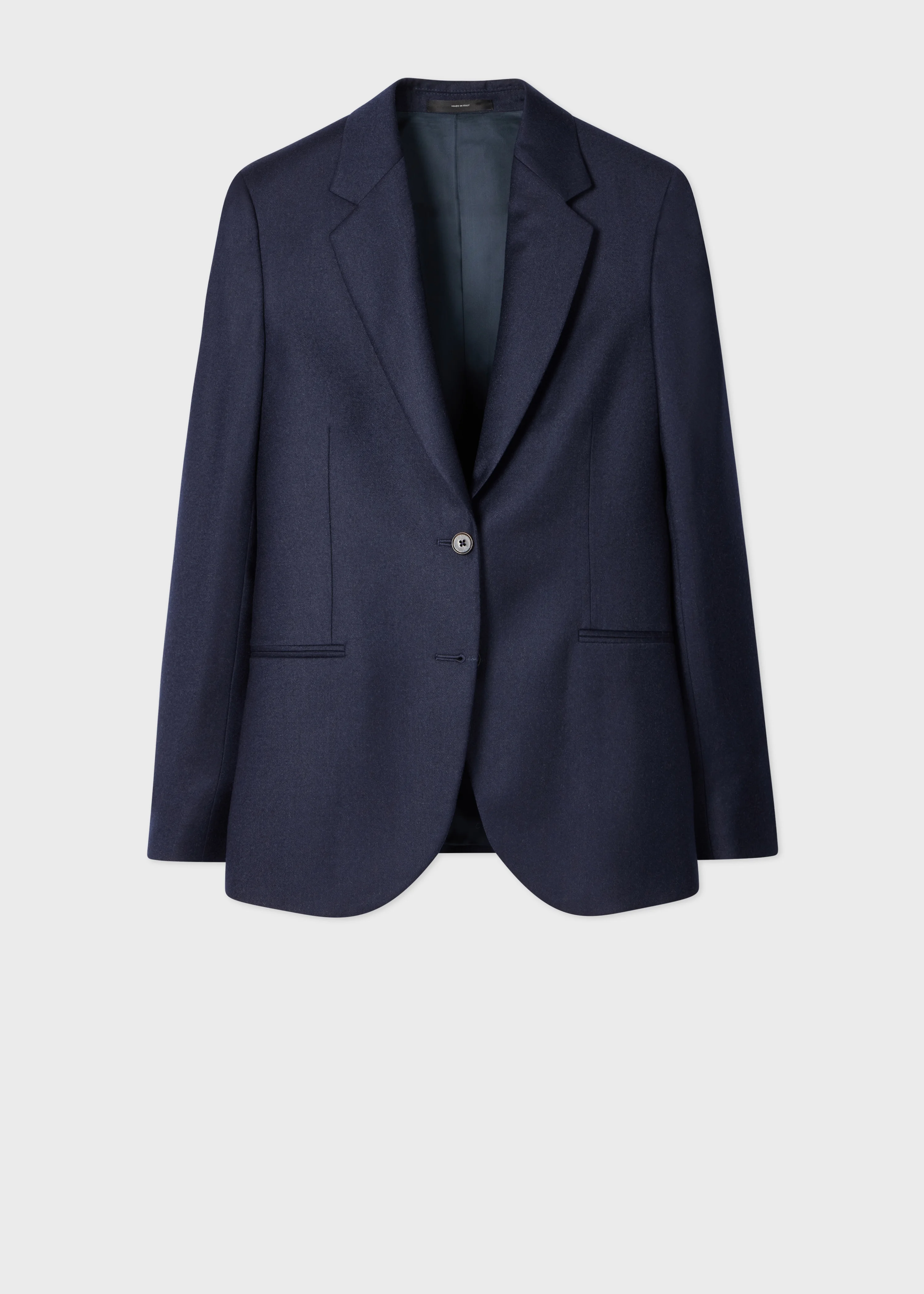 Made in Italy from a wool and cashmere-blend flannel cloth for a soft finish, this navy two-button blazer is cut to a Soho fit and will elevate your tailoring collection. Featuring a notched lapel with Melton wool under-collar, this jacket comes complete with a tonal viscose lining and faux pockets for classic tailoring. The Size Model wears a size 40 (UK 8) Model measures: Height 5’11’’ / 180.5cm | Chest 30½’’ / 78cm | Waist 23’’ / 59cm The Fit - Regular-Fit is relaxed through the body. Product Code: W1R-111PA-T00109-47B