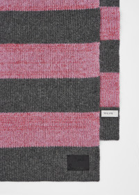 Women's Pink and Grey Lambswool-Blend Block Stripe Scarf