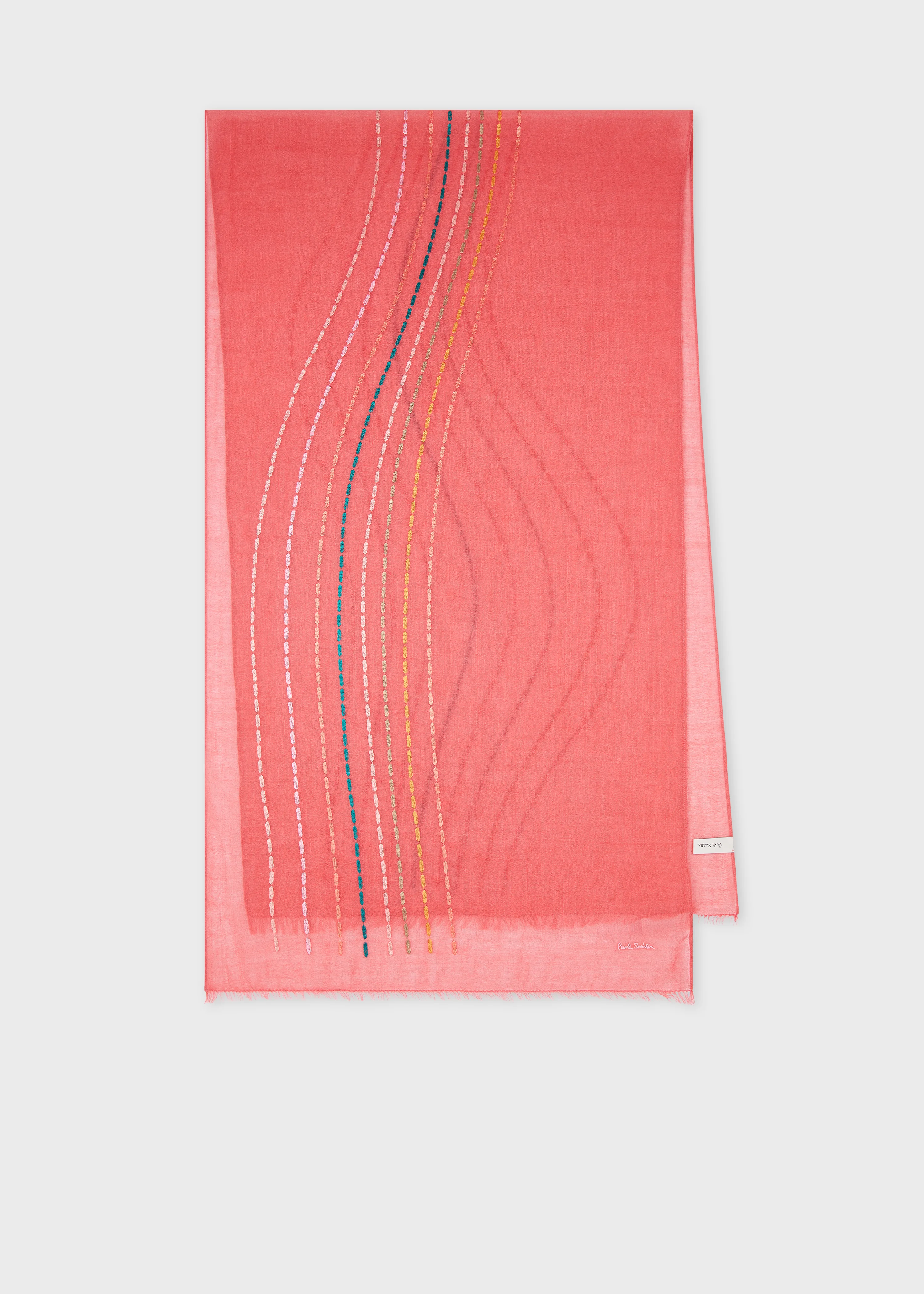 Made from soft merino wool, this bright pink scarf features an embroidered 'Swirl' pattern throughout. Ideal for daily styling, this lightweight scarf adds a touch of seasonal colour to outfits. 100% Merino Wool Dry Clean Only Product Code: W1A-250M-T656-20