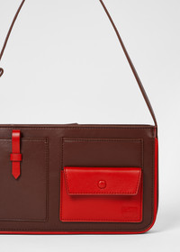 Made in Spain from 100% soft, premium leather, this red pochette shoulder bag features multiple pockets on the front, in varying shades of brown. Ideal for elevated styling, this bag combines functionality with style, making it perfect for daily use. Product Code: W1A-8226-TCBLOD-68