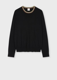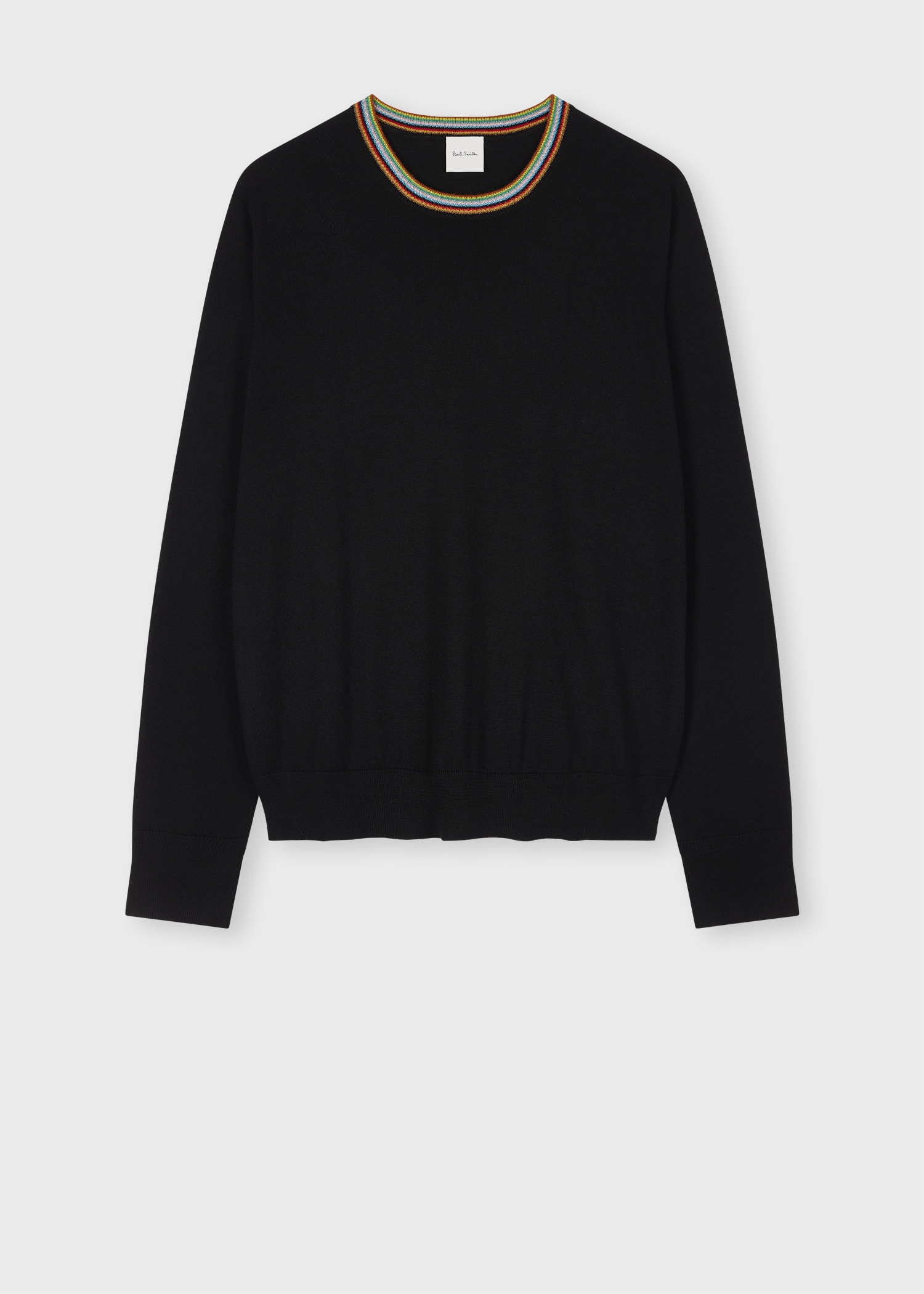 Made from 100% super soft merino wool, this black sweater features a contrasting 'Signature Stripe' neckline. A versatile piece, this sweater can be taken from day to night. 100% Merino Wool Machine Washable Product Code: W1R-502N-P11082-79
