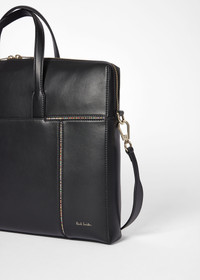 Made from premium leather, this slim folio features a panelled design with 'Signature Stripe' trim for an added flash of colour. Complete with a detachable leather strap, this bag is finished with tonal twill lining and internal zip pocket. Size: H26.5 x W37 x D3.5cm 100% Leather Product Code: W1A-8036-LSIGIN-79