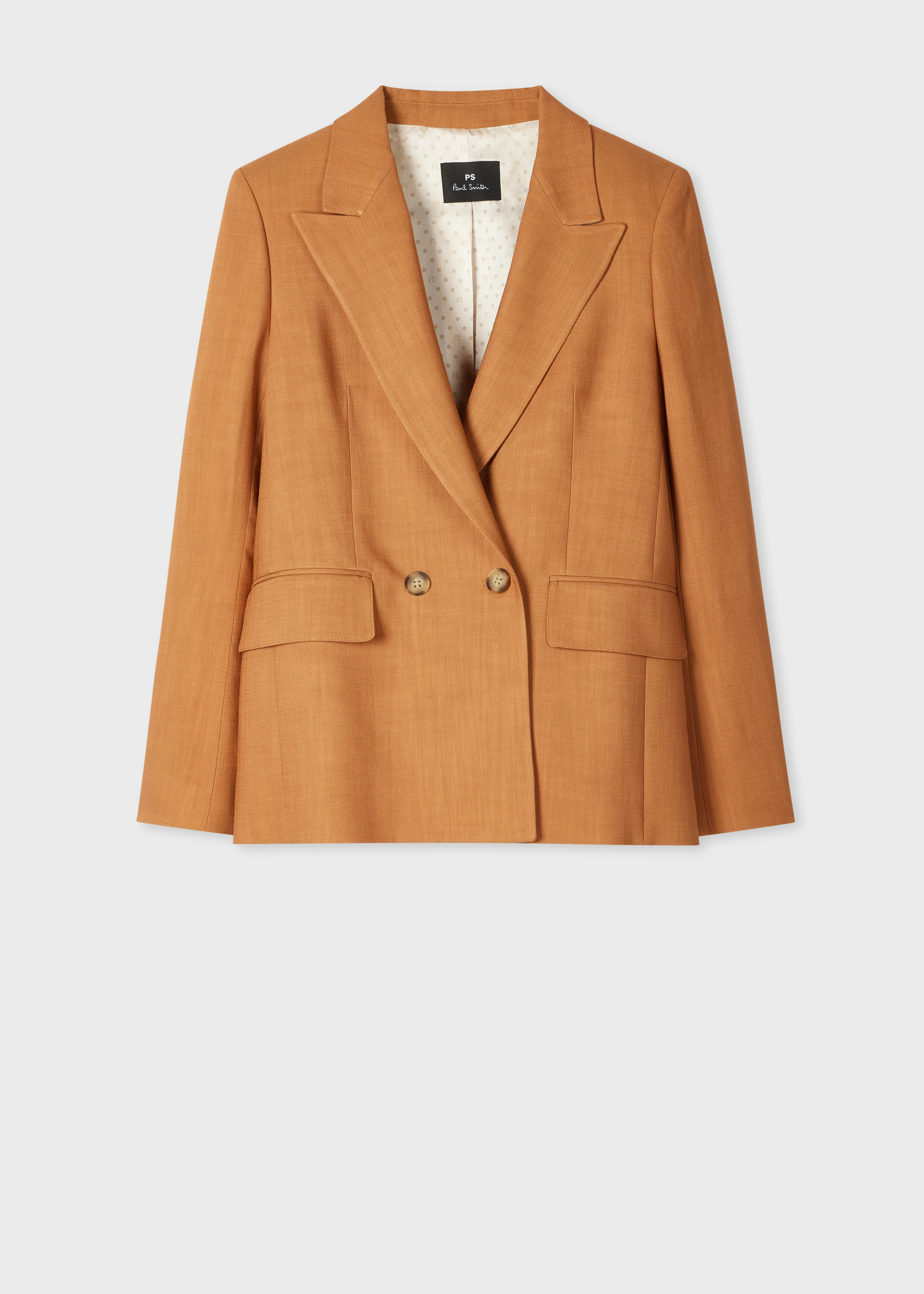 Crafted in Portugal from a soft viscose-blend, this blazer features a double-breasted fastening and is cut to a straight fit with subtle back shaping. An exaggerated peak lapel adds a feminine touch, while the tonal polka-dot ‘PS’ lining provides a refined finish. The Size Model wears a size 40 (UK 8) Model measures: Height 5’11’’ / 180.5cm | Chest 30½’’ / 78cm | Waist 23’’ / 59cm The Fit - Straight-Fit is tailored with a clean silhouette through the body Product Code: W2R-437J-V31390-18