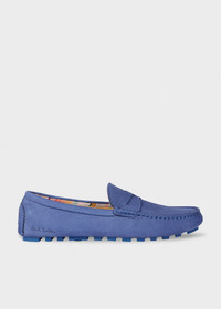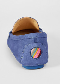 Made in Portugal from soft grained nubuck leather, these slip-on mid-blue 'Tibbs' driving shoes feature a classic moccasin construction with dyed to match anti-slip rubber soles. These driving loafers feature a contrasting 'Swirl' trim inside and embroidered at the heel. Made in Portugal 100% Leather Product Code: W1S-TBS02-PNUB-41