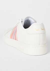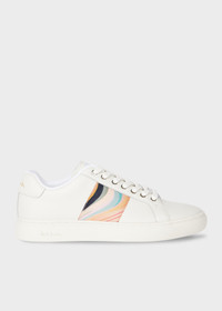 Made from premium leather uppers, these white 'Lapin' trainers feature our new 'Dusky Swirl' on the side - for an added flash of colour. Complete with tonal rubber cupsoles, these trainers are finished with a gold signature logo at the heel. 100% Leather Uppers 100% Rubber Soles Product Code: W1S-LAP96-PLEA-01