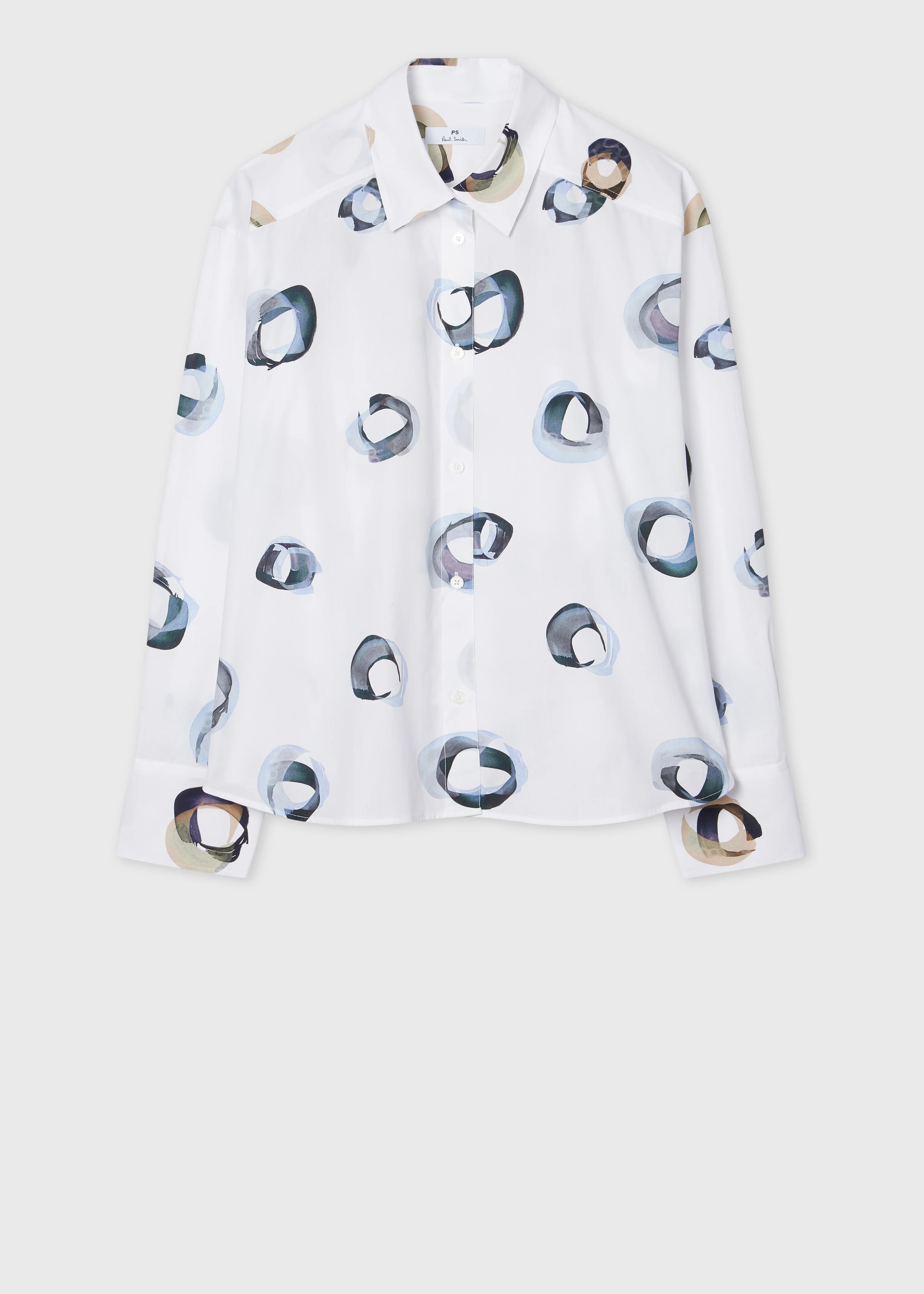 Crafted from pure cotton, this white shirt features the seasonal 'Painted Spot' print design for a contemporary look. The boxy fit is slightly cropped for a modern silhouette, making it a versatile addition to your wardrobe. The Size Model wears a size 40 (UK 8) Model measures: Height 5’11’’ / 180cm | Chest 30½’’ / 78cm | Waist 24’’ / 61cm The Fit - Boxy fit is slightly cropped for a contemporary silhouette Product Code: W2R-371B-T31320-01