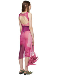 Semi-sheer nylon mesh dress. Raw edges and graphic pattern printed throughout. · Layered construction · Asymmetric neck and hem · Gathering at side seams · Knotted accents at shoulder strap · Cutout at back · Unlined Supplier color: Fuchsia 100% polyamide. Made in Italy 231427F054000