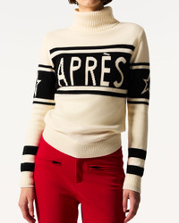 A fresh spin on a Perfect Moment classic, the Apres Schild Sweater is updated for the season while keeping its signature typographic intarsia front and centre. Crafted from cosy Merino wool with a fitted silhouette, it’s a warm, go-to layer for both slope days and post-ski plans. Running true to size, it pairs perfectly with any of our Aurora pants for a timeless alpine look. Fitted Intended to hit at the hip Turtleneck Long sleeves Rib knit hem and cuffs "Apres" intarsia-knit at the center front This knitwear is delicate. Please treat with caution as abrasion can damage the fabric. May pill slightly, this is natural with fine knit fabric Imported Product Code: W30010341707 Materials & Care Materials - 100% Merino wool Care - Hand wash cold separately - Do not bleach - Lay flat to dry - Cool iron if needed or dry clean