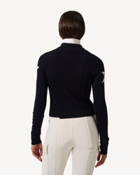 Streamlined and chic, the Cable Knit Sweater features a cropped fit with a bold star intarsia and directional cable-knit detailing down the front. Crafted from soft fine-gauge knit with a mock neck and ribbed trims, it delivers warmth and clean-lined style in one sleek layer. Style with high-waisted ski pants or layer under salopettes for a polished alpine look. Cropped fit Intended to hit above the hip Mock neck Long sleeves Rib knit hem and cuffs Signature star intarsia-knit at the center front Cable-knit motif along front left and right sides This knitwear is delicate. Please treat with caution as abrasion can damage the fabric. May pill slightly, this is natural with fine knit fabric Imported Product Code: W30004202191 Materials & Care Materials - 100% Merino wool Care - Hand wash cold separately - Do not bleach - Lay flat to dry - Cool iron if needed or dry clean