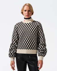 Introducing our new Carving Sweater, crafted with a striking print in a neutral palette, inspired by the thrill of carving down the mountainside. Designed with a relaxed silhouette, it features a cozy turtleneck and long sleeves, ensuring warmth. The refined rib-knit hem and cuffs highlight its high-quality craftsmanship. It's the perfect layering piece to complement your outerwear essentials, such as the Black Aurora Pant and Polar Flare Jacket. Relaxed fit Intended to hit above the hip Turtleneck Long, balloon sleeves Rib knit hem and cuffs This knitwear is delicate. Please treat with caution as abrasion can damage the fabric. May pill slightly, this is natural with fine knit fabric Imported Product Code: W30011001703 Materials & Care Materials - Shell: 70% wool, 30% cashmere Care - Machine wash at 30C - Do not bleach - Do not iron - Tumble dry low - Gentle dry cleaning