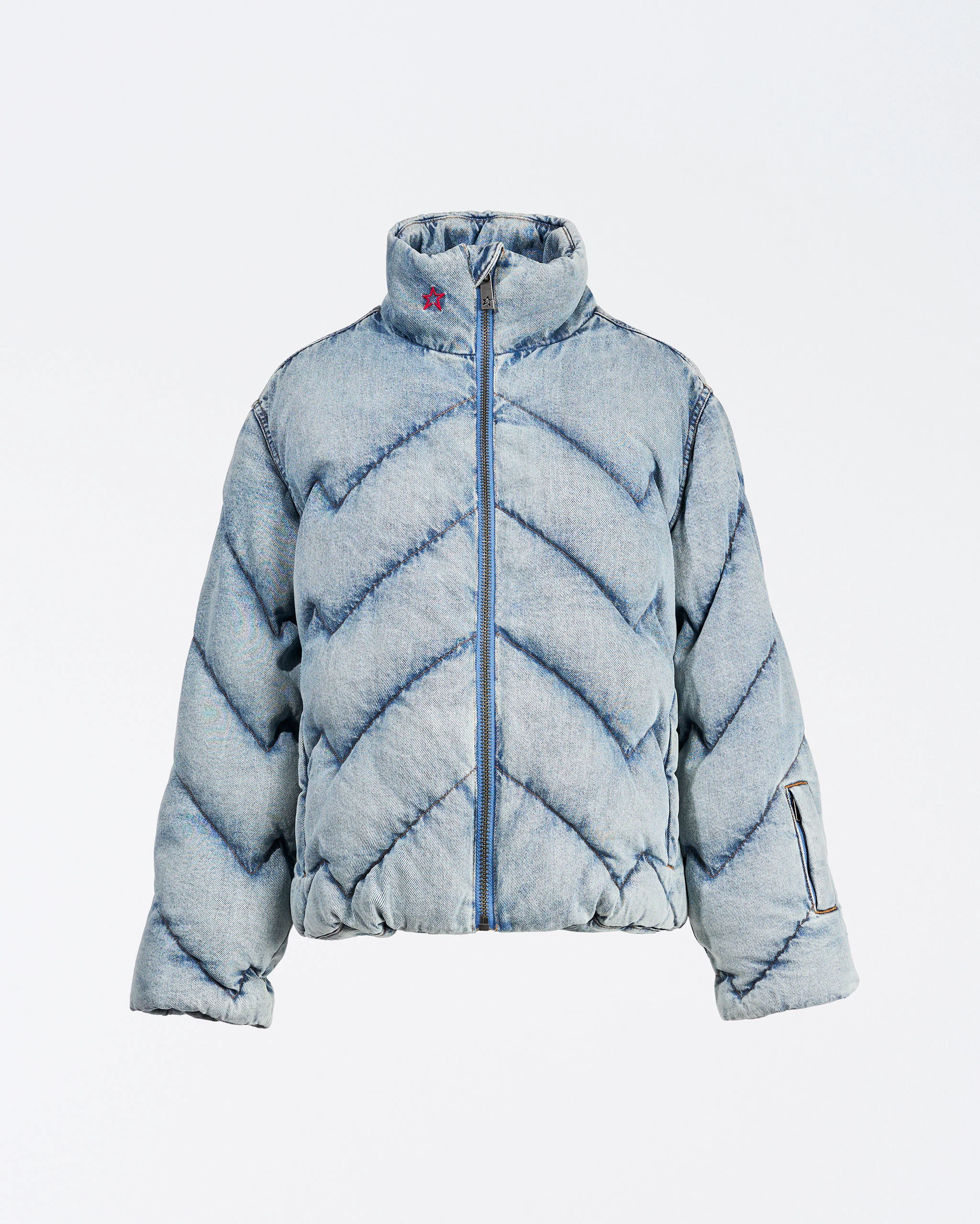 Our new Denim Puffer Jacket is crafted from our signature soft 100% cotton and filled with 3M Thinsulate Featherless insulation for exceptional warmth without the bulk. Throw it over any of our Merino Wool sets for cozy, laid-back style during post-ski apres adventures. Relaxed fit, intended to hit at the hip Full-front zip closure Two front-zip pockets External zip pocket Internal chest pocket Internal goggle pocket and cloth cleaner Adjustable snow skirt Filled with 3M Thinsulate Featherless Insulation Fully lined Imported Product Code: W30010641973 Materials & Care Materials - Shell: 100% cotton - Lining: 100% nylon - Insulation: 100% polyester Care - Hand wash cold - Do not bleach - Do not Iron - Do not tumble dry - Do not dry clean - Do not wring - Do not use fabric softener