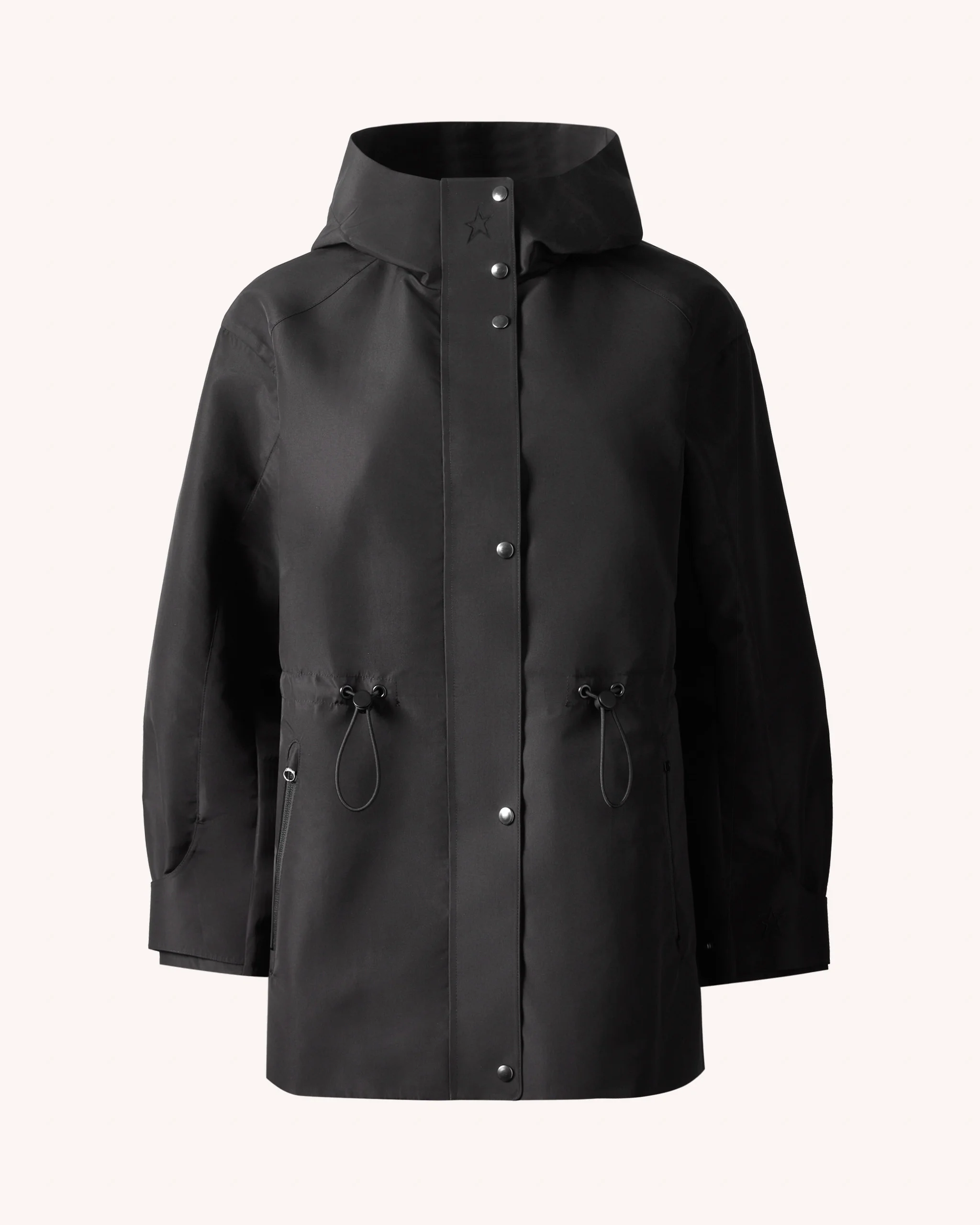 Built for the city, ready for the elements. This oversized parka offers lightweight protection in changeable conditions. Finished in matte black for a versatile, urban‑ready look. Cropped, oversized fit Hook and eye closure Tonal houndstooth quilted lining Two front pockets Flared cuffs Large hood Star logo stitched across back Made in Italy Product Code: W30013041703 Materials & Care Materials - Fabric: 100% PL Care - Do not wash - Do not bleach - Do not iron - Do not tumble dry - Gentle dry clean only
