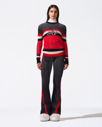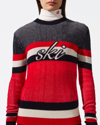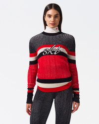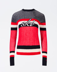 The Evie Merino Wool Sweater is a ski season must-have, featuring an easy-to-style crewneck and an elegant shape with rib-knit hem and cuffs. Crafted with care from luxurious Woolmark-certified Merino wool, it showcases a "ski" intarsia-knit at the center-front. Pair with the matching Evie Knitted Flare Legging for a complete look. Fitted Intended to hit at the hip Crewneck Long sleeves Rib knit hem and cuffs "Ski" intarsia-knit at the center-front This knitwear is delicate. Please treat with caution as abrasion can damage the fabric. May pill slightly, this is natural with fine knit fabric Imported Product Code: W30011112191 Materials & Care Materials - 100% Merino wool Care - Hand wash cold separately - Do not bleach - Lay flat to dry - Cool iron if needed or dry clean