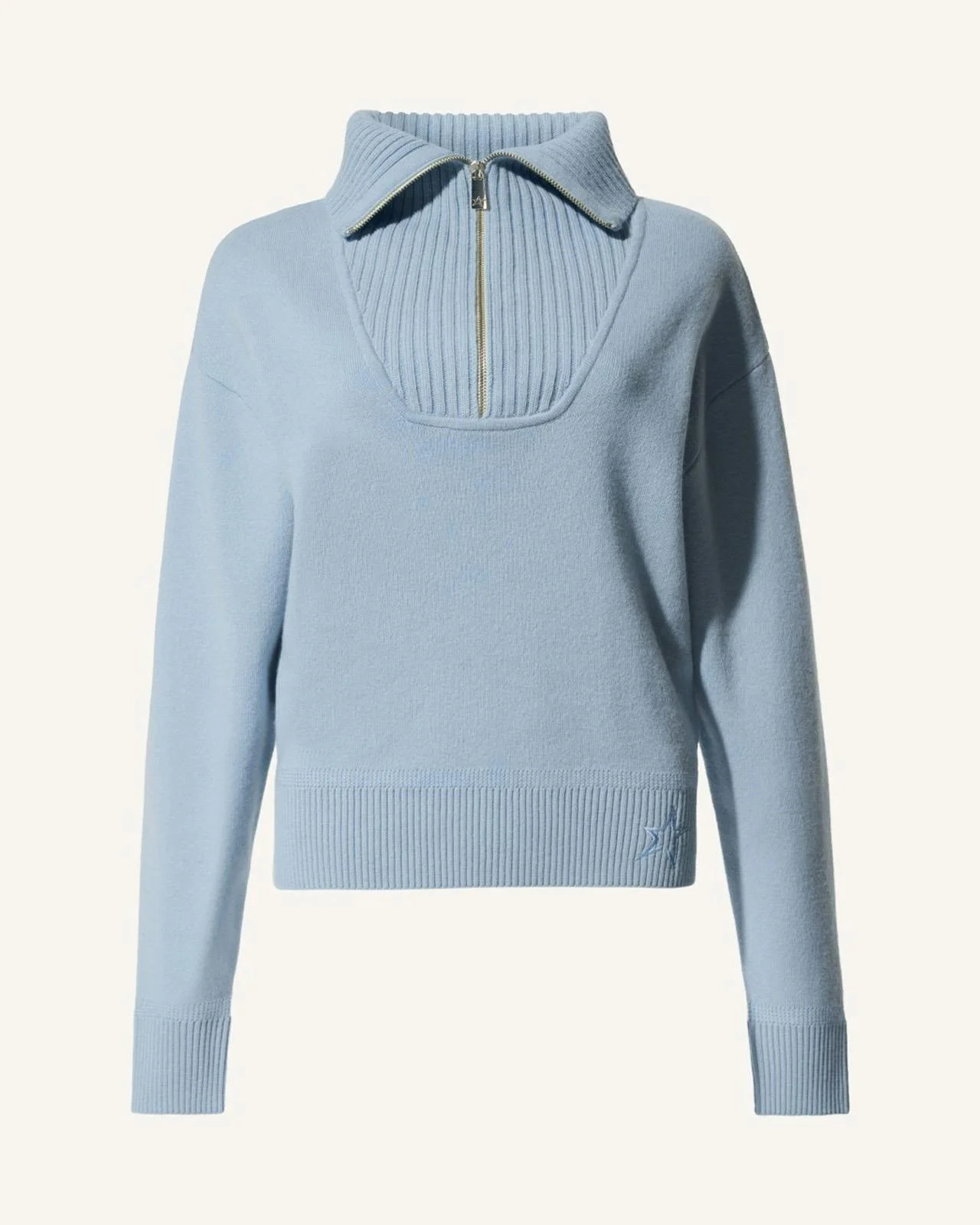 A versatile knit in a soft Merino wool–cashmere blend for lightweight warmth. It features a ribbed collar, half-zip neckline, and layers effortlessly over activewear or denim. Finished with a tonal star logo at the hem. 14-gauge fine knit RWS-certified wool GCS-certified cashmere Made in Romania Product Code: W30013672380 Materials & Care Materials - 90% Ultrafine Merino Wool - 10% Cashmere Care - Do not bleach - Do not tumble dry - Lay flat to dry - Iron at max. 110 °C - Dry clean