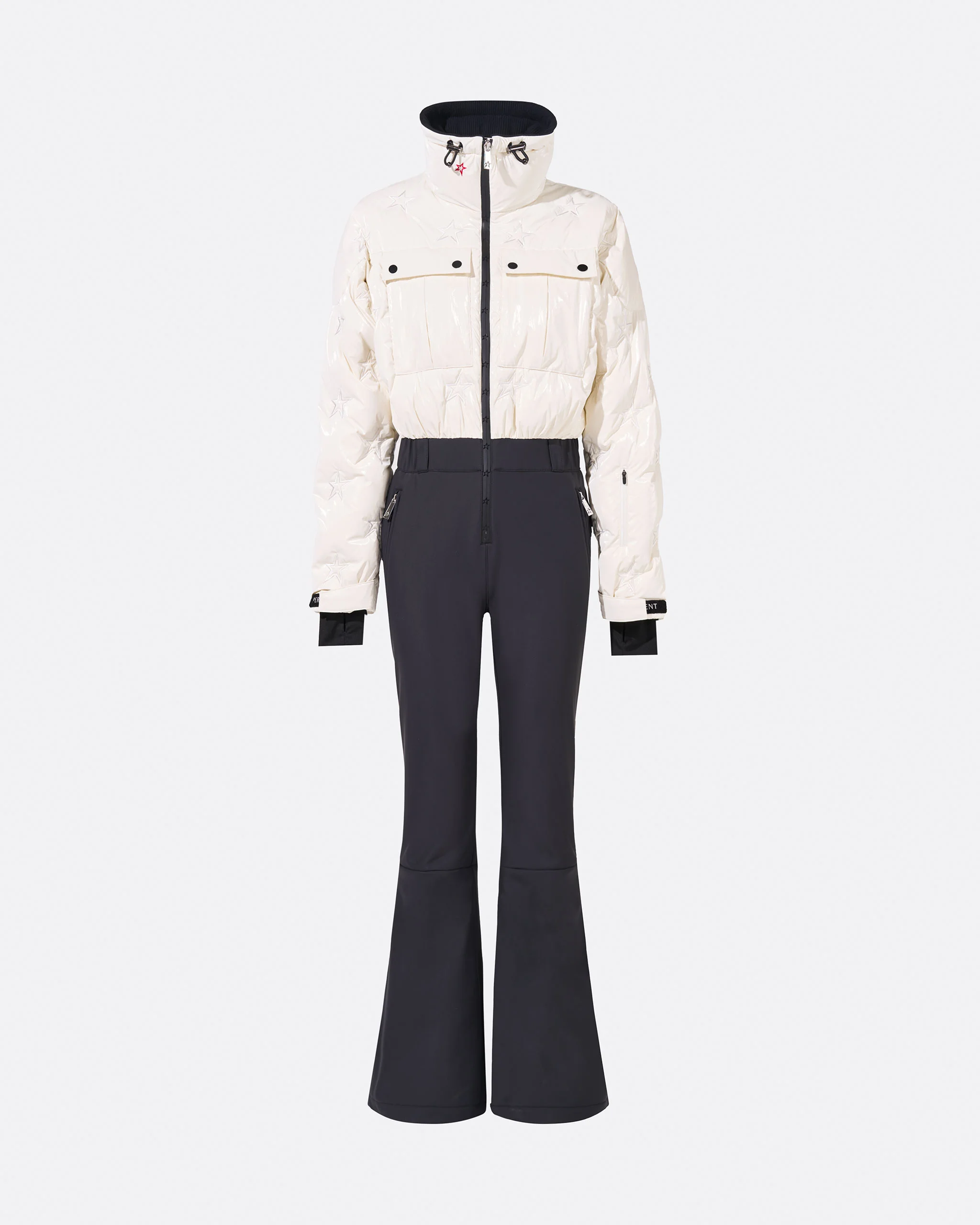 The Helen Ski Suit seamlessly blends style with performance, combining the warmth of a jacket with the functionality of ski pants. The top of the suit is filled with 700-power fill down, featuring a ribbed high neck collar and cuffs for exceptional warmth. Crafted with advanced Toray Dermizax technology, this suit ensures water-resistant breathability for your comfort. The 4-way stretch fabric offers fluid movement, while adjustable zippered boot hems and integrated snow gaiters provide ease over ski boots. Flared silhouette Front-zip closure Four external front pockets External ski pass-zip pocket as well as internal chest-zip and goggle pockets Thermal fleece lining Adjustable zipper at hem to comfortably fit over boots Snow gaiters with interior silicone elastic and exterior snap closures for added protection Anti-tear guards inside lower leg to prevent against damage from sharp skis or boots Adjustable high-neck collar 700-fill-power down insulation Unmatched freedom of movement with the 4-way stretch technology Crafted with Toray Dermizax technology, water-resistant and breathable to keep you comfortable and dry Imported Product Code: W30009291707 Materials & Care Materials - Upper Body Shell: 100% nylon - Lower Body Shell: 80% nylon 20% spandex - Backing: 94% polyester, 6% spandex - Lining: 100% nylon - Insulation: 90% goose down, 10% feather Care - Machine wash at 30C - Do not bleach - Cool Iron - Do not tumble dry - Do not dry clean