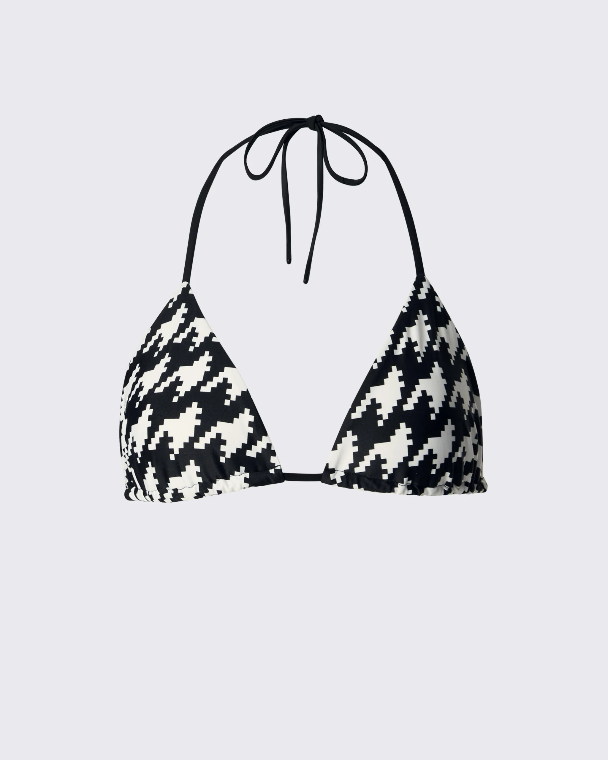 Sun worshippers, this one is for you. The Houndstooth Bikini Top is minimal, yet ultra flattering, and crafted in our iconic houndstooth print. Adjustable ties at the neck and back allow for ease of wear (and less tan lines). Pair with the matching bikini bottoms for poolside lounging, and denim shorts for the ice cream run. Small coverage bikini top Triangle style Tie back Imported Product Code: W30013071740 Materials & Care Materials - 78% polyamide, 22% elastane Care - Machine wash at 40ºC - Do not bleach - Do not tumble dry - Iron at low temperature - Dry clean, using petroleum-based solvents or perchloroethylene (PCE)