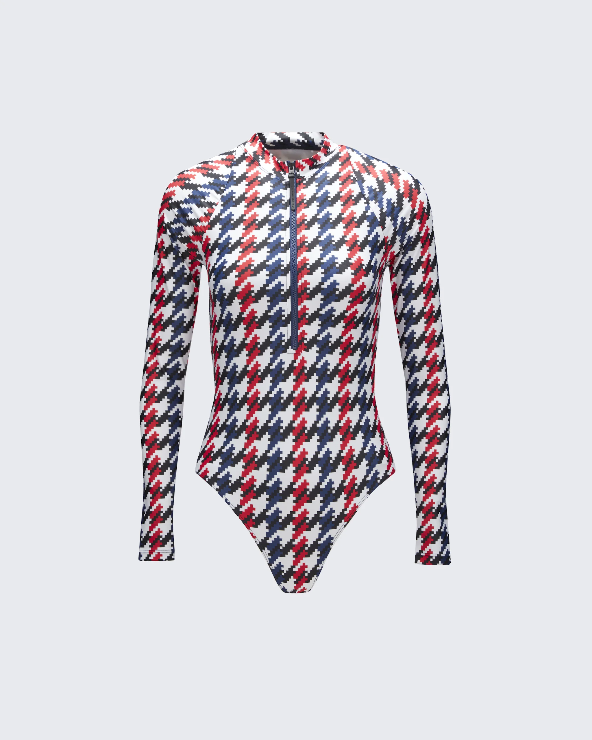 Glide through the surf in our fully lined PM 1/2 Zip Spring Suit. Made from Carvico, a high-tech, high-performance Italian fabric, made with UV protection, while resistant to chlorine and pilling. Ideal for extreme sports, designed with muscular compression decreases muscular strain and improves athletic performance to protect you from rays and harsh waters. UV protective (UPF50+) & chlorine resistant Half-zip mock-neck Long sleeves Fully lined High-cut thigh Full back coverage Imported Product Code: W30006171749 Materials & Care Materials - Shell: 80% polyamide, 20% elastane - Lining : 81% polyester, 19% spandex Care - Machine wash at 40C - Do not bleach - Do not tumble dry - Iron at low temprature - Dry clean, any solvent except tetrachlorethylene