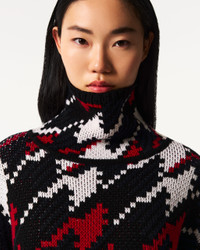 Bold in proportion and pattern, the Houndstooth Merino Wool Turtleneck Sweater is a modern apres essential. Designed in a relaxed, slightly cropped silhouette, it features an oversized turtleneck, long sleeves, and all-over Houndstooth intarsia in red, white, blue, and black. Crafted from soft Merino wool with ribbed cuffs and hem, it creates a statement look on and off the mountain. Relaxed, cropped fit Wide, high neck Long sleeves with ribbed cuffs Rib-knit hem This knitwear is delicate. Please treat with caution as abrasion can damage the fabric. May pill slightly, this is natural with fine knit fabric Imported Product Code: W30013471739 Materials & Care Materials - 100% Merino wool Care - Hand wash cold separately - Do not bleach - Lay flat to dry - Cool iron if needed or dry clean