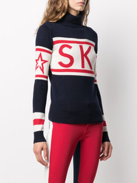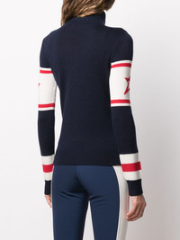 Ski intarsia knit roll neck jumper Navy blue/white/red merino intarsia knit ribbed-knit edge straight hem roll neck long sleeves Made in France Composition Merino 100% SIZE & FIT Model measurements Height 5 ft 11 in(1.8 m) Bust/Chest 31.1 in(79 cm) Hips 34.25 in(87 cm) Waist 22.83 in(58 cm) Measurement BUST 32.28 in(82 cm) SLEEVE LENGTH 18.89 in(48 cm) FittingInformation Designed for a slim fit that sits just away from the body offering a close yet comfortable fit This piece fits true to size – take your usual size Washing instructions Hand Wash
