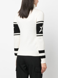 intarsia-knit roll-neck jumper snow white merino wool fine knit ribbed-knit edge intarsia-knit logo roll neck long sleeves straight hem Imported Composition Merino 100% SIZE & FIT Model measurements Height 5 ft 11 in(1.8 m) Bust/Chest 33.07 in(84 cm) Hips 37.4 in(95 cm) Waist 25.19 in(64 cm) FittingInformation This piece fits true to size. We recommend you get your regular size Cut for a slim fit Made with a mid-weight fabric Washing instructions Hand Wash