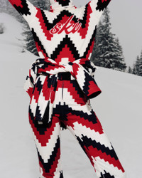 This sweater features a bold, retro chevron print and is made with Woolmark-certified Merino wool. It features a rib-knit hem, cuffs and a turtleneck to keep you warm in style. The fitted silhouette is designed to hit the hip, making it the perfect knit to elevate your ski look. Fitted Intended to hit at the hip Turtleneck Long sleeves Rib knit hem and cuffs "Ski" intarsia-knit at the center front All-over chevron print This knitwear is delicate. Please treat with caution as abrasion can damage the fabric. May pill slightly, this is natural with fine knit fabric Imported Product Code: W30010962202 Materials & Care Materials - 100% Merino wool Care - Hand wash cold separately - Do not bleach - Lay flat to dry - Cool iron if needed or dry clean