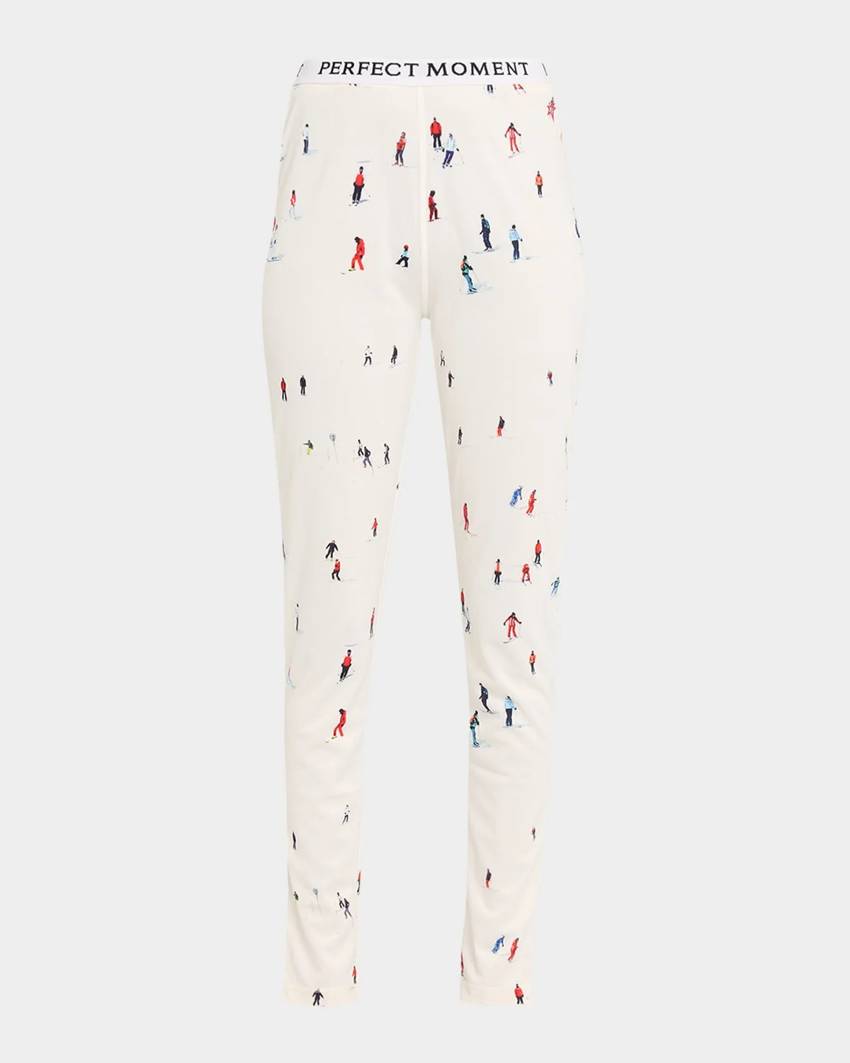 Perfect Moment base layer ski leggings crafted from moisturewicking jacquard knit. High rise Elasticized logo waistband Secondskin fit Ankle length Pullon style Polyester Machine wash Imported