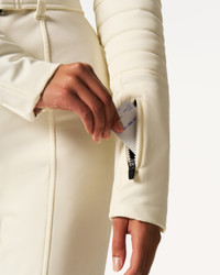Sleek, sculpted, and built to perform—the JG Ski Suit delivers streamlined style with full-body protection. Crafted from water-resistant, breathable Toray Dermizax™ fabric with 4-way stretch, it moves with you while keeping you warm and dry. The fitted silhouette flares at the hem, while thoughtful details like a thermal fleece lining, removable belt, snow gaiters, and anti-tear guards ensure all-day functionality. Zipped chest, waist, and ski pass pockets keep essentials secure—whether you're carving down runs or heading to apres. New for AW25, the JG is also equipped with RECCO® technology for extra safety on the slopes. Fitted, flared silhouette Front-zip closure with removable belt Two front-zip pockets External chest and ski pass pockets Thermal fleece lining Adjustable zipper at hem to comfortably fit over boots Snow gaiters with interior silicone elastic and exterior snap closures for added protection Anti-tear guards inside lower leg to prevent against damage from sharp skis or boots Unmatched freedom of movement with the 4-way stretch technology Crafted with Toray Dermizax technology, water-resistant and breathable to keep you comfortable and dry Fitted with RECCO® Imported Product Code: W30013001707 Materials & Care Materials - Shell: 80% nylon, 20% spandex - Backing: 94% polyester, 6% spandex Lining: 100% polyamide Care - Machine wash at 30°C - Do not bleach - Do not iron - Tumble dry low - Do not dry clean - Do not wring - Do not use fabric softener - Wash with fasteners closed