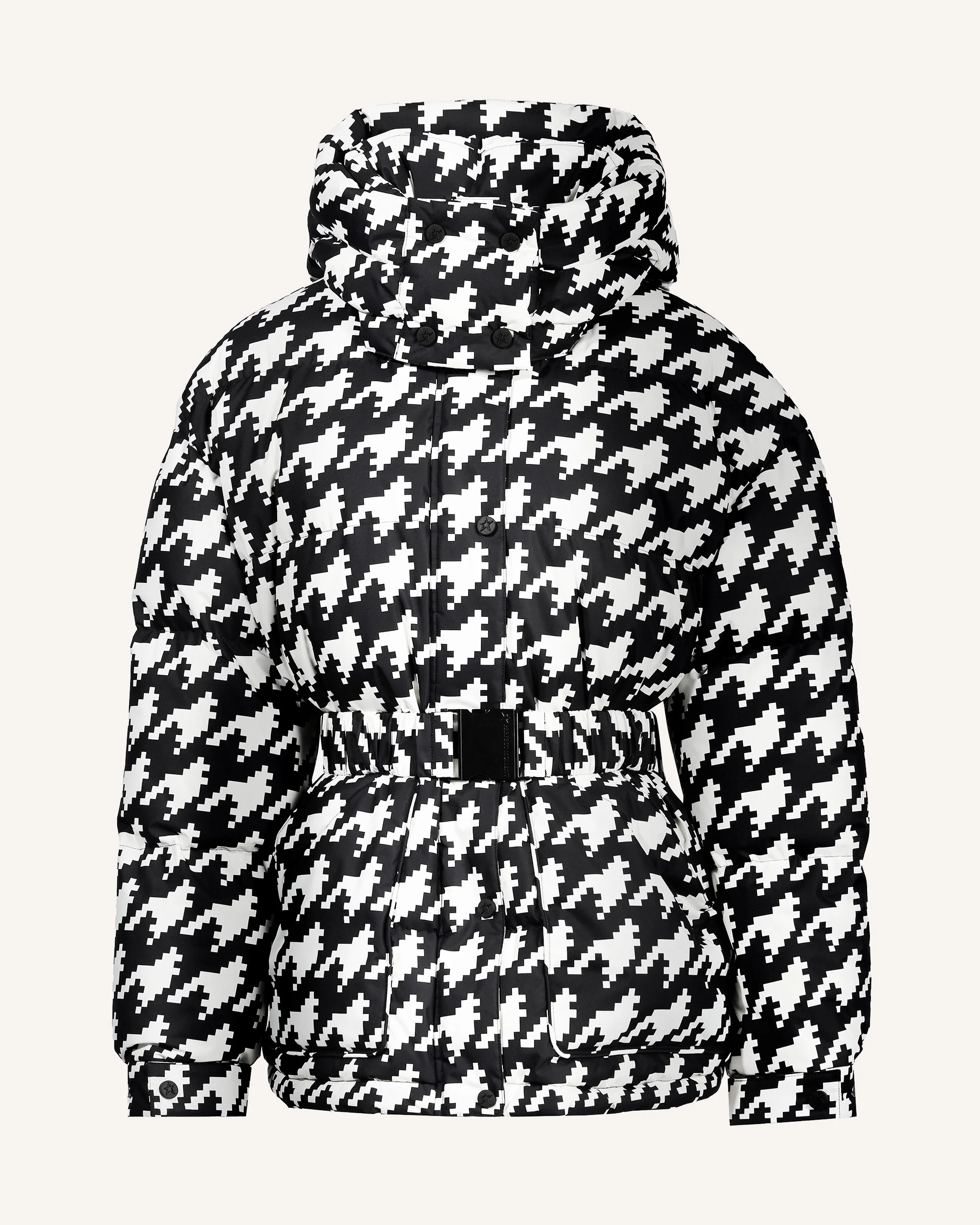 The Maya Parka is designed to keep you warm and stylish both on and off the slopes. Featuring a water-resistant shell and 700-fill-power down insulation, this jacket offers exceptional warmth and protection against the elements. With thoughtful details like a removable hood, storm cuffs, and two versatile belt options, it combines functionality with elevated style. Choose from high-shine black for a sleek look, or opt for our reworked houndstooth prints for a chic, modern twist. This parka is your perfect companion for both ski days and city strolls, blending performance with a timeless design. Pair with our Cargo Ski Pant for an elevated ski look. Relaxed fit, intended to hit at the thigh Full-zip front with a snapped storm placket Two front-zip pockets Internal chest pocket Internal goggle pocket and cloth cleaner Detachable helmet-compatible hood 700-fill-power down insulation Removable self-belt Fully lined Imported Product Code: W30010441740 Materials & Care Materials - Shell: 100% polyester - Lining: 100% nylon - Insulation: 90% goose down, 10% feather Care - Machine wash at 30C - Do not bleach - Do not iron - Tumble dry low - Gentle dry cleaning
