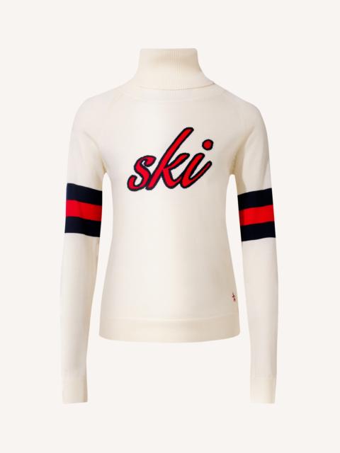 A polished take on alpine style, the Neve Sweater features a fitted silhouette and cosy rib-knit turtleneck—perfect for layering from slope to apres. Crafted from extra-fine Merino wool, it’s finished with a bold “ski” intarsia across the front for a typographic edge. Designed to graze the hip with ribbed cuffs and hem, it pairs effortlessly with the Aurora Flare Pant for a sleek ski look. Fitted Intended to hit at the hip Turtleneck Long sleeves Rib knit hem and cuffs "Ski" intarsia-knit at the center front This knitwear is delicate. Please treat with caution as abrasion can damage the fabric. May pill slightly, this is natural with fine knit fabric Imported Product Code: W30009481702 Materials & Care Materials - 100% Merino wool Care - Hand wash cold separately - Do not bleach - Lay flat to dry - Cool iron if needed or dry clean