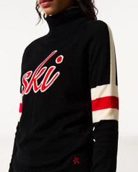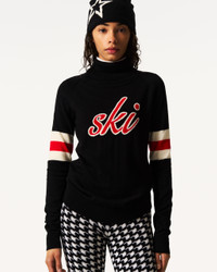 A polished take on alpine style, the Neve Sweater features a fitted silhouette and cosy rib-knit turtleneck—perfect for layering from slope to apres. Crafted from extra-fine Merino wool, it’s finished with a bold “ski” intarsia across the front for a typographic edge. Designed to graze the hip with ribbed cuffs and hem, it pairs effortlessly with the Aurora Flare Pant for a sleek ski look. Fitted Intended to hit at the hip Turtleneck Long sleeves Rib knit hem and cuffs "Ski" intarsia-knit at the center front This knitwear is delicate. Please treat with caution as abrasion can damage the fabric. May pill slightly, this is natural with fine knit fabric Imported Product Code: W30013341703 Materials & Care Materials - 100% Merino wool Care - Hand wash cold separately - Do not bleach - Lay flat to dry - Cool iron if needed or dry clean