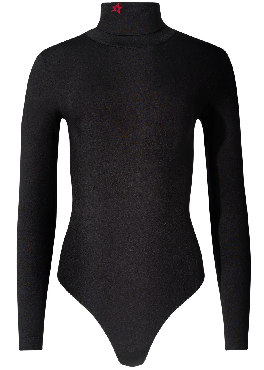 Info & Care Perfect moment bodysuit Logo detailing at high-neck Snap closure at base Shell: 48.5% nylon, 45.5% cotton, 6% spandex Hand wash cold Size & Fit Length shoulder to hem: 61.5cm / 24.5", sleeve length: 60cm / 23.5" for a size Small Midweight Slim fit Model is 175cm / 5'9" and wears a size Small
