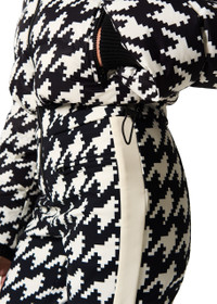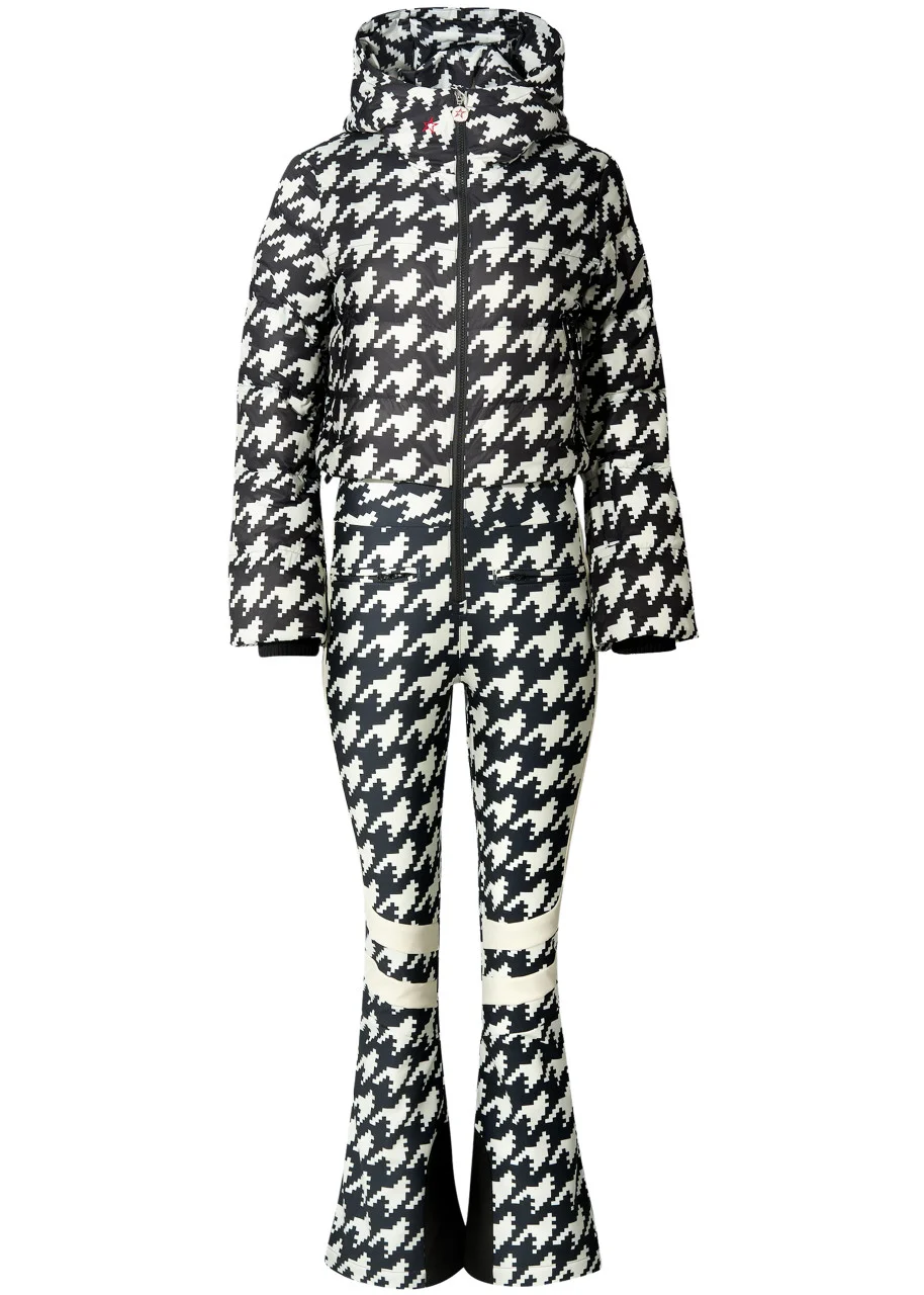 Info & Care Perfect moment ski suit Toray Dermizax™ fabric Printed, helmet-compatible hood at high-neck, two front-zip pockets, external ski pass pocket, snow gaiters with interior silicone elastic and exterior snap closures, anti-tear guards, Fitted with RECCO, 4-way stretch technology, breathable, water-resistant Zip fastening through front Upper Body Shell: 83% nylon, 17% spandex, lower Body Shell: 80% nylon, 20% spandex, backing: 94% polyester, 6% spandex, lining: 100% recycled polyester, insulation: 80% duck down, 20% feather Machine wash at 30°C Size & Fit Slim fit, flared-leg fit Model is 175cm / 5'9" and wears a size small