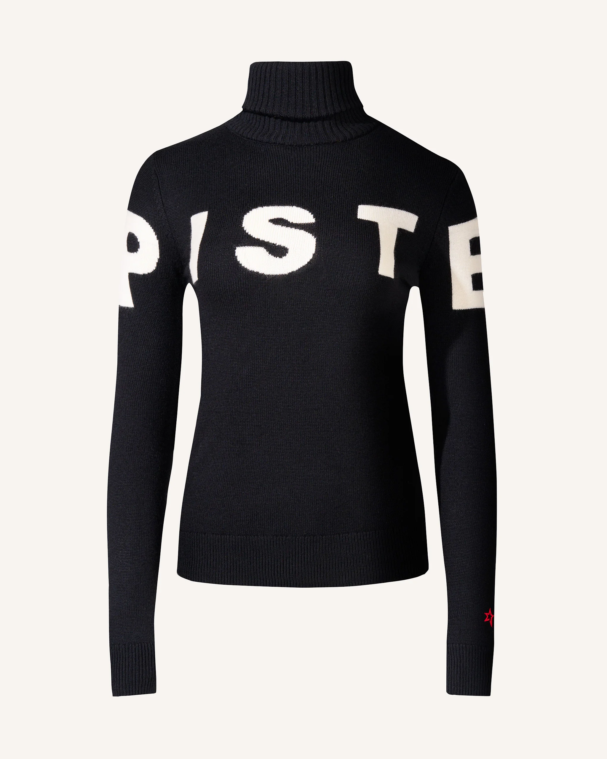 A slope-side staple with a graphic twist, the Piste Sweater is crafted from Woolmark-certified Merino wool and features a bold “PISTE” intarsia across the chest. Designed for a slim fit that hits at the hip, it’s finished with a soft turtleneck, ribbed cuffs, and hem. Warm, breathable, and effortlessly layerable—style under outerwear or wear solo from ski day to apres. Fitted Intended to hit at the hip Turtleneck Long sleeves Rib knit hem and cuffs "Piste" intarsia-knit at the center front This knitwear is delicate. Please treat with caution as abrasion can damage the fabric. May pill slightly, this is natural with fine knit fabric Imported Product Code: W30013301703 Materials & Care Materials - 100% Merino wool Care - Hand wash cold separately - Do not bleach - Lay flat to dry - Cool iron if needed or dry clean