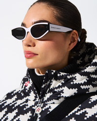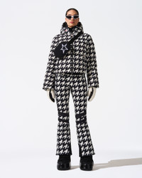 Back by popular demand, our bestselling Polar Flare Ski Jacket returns this season in a timeless houndstooth print. Chic and classic, this jacket is crafted from technically-advanced, water-resistant fabric to keep you stylishly protected on the slopes. With 700-fill-power down insulation, it provides exceptional warmth, while the updated design features a helmet-compatible hood, internal ski and goggle pockets, and an external pocket on the flared sleeve, perfectly sized for your ski pass. Cut for a cropped, fitted style, it runs slightly small for a sleek, snug silhouette—ideal for staying warm and sophisticated in any winter setting. Pair with our best-selling High-Waist Aurora Ski Pant and Schild Sweater for a classic Perfect Moment look. Slightly cropped and fitted, intended to sit just above hip Full-front zip closure Flared sleeves made with ribbed cuffs Two front-zip pockets External ski pass pocket Internal chest pocket Internal goggle pocket and cloth cleaner Adjustable snow skirt High-neck collar and helmet compatible hood 700-fill-power down insulation Fully lined Imported Product Code: W30011581740 Materials & Care Materials - Shell: 100% polyester - Lining: 100% nylon - Insulation: 90% goose down, 10% feather Care - Machine wash at 30C - Do not bleach - Do not Iron - Tumble dry low - Gentle dry cleaning