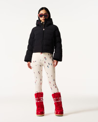 Our bestselling ski jacket returns for AW25—reengineered for even greater performance. The Polar Flare Ski Jacket is a Perfect Moment icon, known for its cropped, flared silhouette and flattering, feminine fit. Crafted from high-performance fabric, it’s fully water resistant and insulated with 700-fill-power Allied down for serious warmth. Slope-ready features include a snap-down puller to lock the zip, high-neck collar, helmet-compatible hood, and adjustable snow skirt. With RECCO® technology and a full suite of internal and external pockets, it’s no wonder this is our number one bestseller. Slightly cropped and fitted, intended to sit just above hip Full-front closure with snap-down puller to lock the zip Two front-zip pockets External ski pass pocket Internal chest pocket Internal goggle pocket and cloth cleaner Adjustable snow skirt High-neck collar and helmet compatible hood 700-fill-power Allied down insulation Fully lined Fitted with RECCO® Imported Product Code: W30012211703 Materials & Care Materials - Shell: 83% nylon, 17% spandex - Lining: 100% recycled polyester - Insulation: 80% duck down, 20% feather Care - Machine wash at 30°C - Do not bleach - Do not iron - Tumble dry low - Do not dry clean - Do not use fabric softener - Do not wring - Wash with fasteners closed